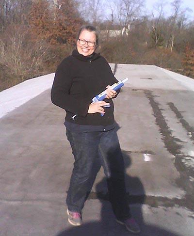Most small business owners wear many (if not ALL) of the hats needed to make things happen, and June is no exception. Here she is sporting her signature smile, while caulking her roof!
