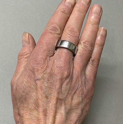 It was comfortable to wear and I loved not having to remember to charge it constantly. I included a picture of it on my old, wrinkly hand. I have average size hands and can wear both medium and large size womens gloves. This ring fit both my middle finger and my index finger; the Oura website advises wearing on one of those for best results. Retail price on this exact ring is currently $349. More info here https://ouraring.com/