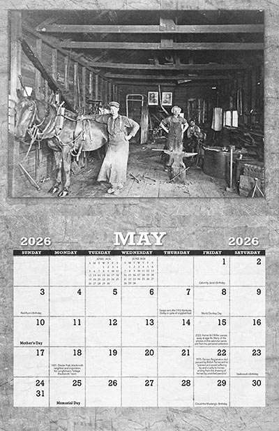 Calendar anniversary dates and trivia provided by Fran JurgaSince 1985, Fran Jurga’s Hoofcare Publishing has been the go-to source for current farrier industry-related news, along with an astonishing array of historical reporting: stories pertaining to all things farrier and blacksmith. Fran’s extensive background in history, research, copywriting and editing is apparent when you read her articles. Most are illustrated with pertinent images that can require hours of searching to find, verify and document.