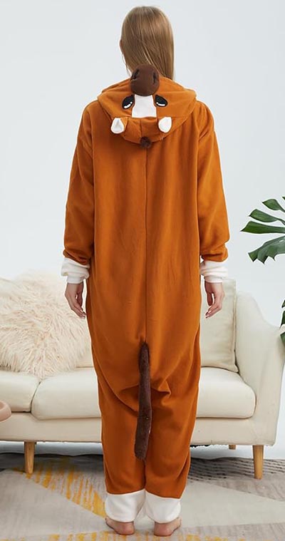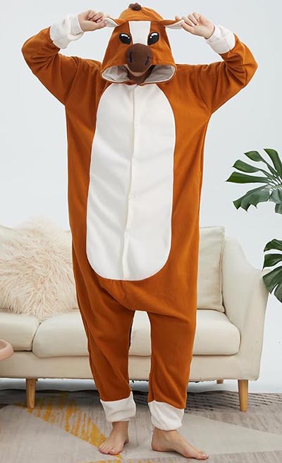 This goofy adult-sized onesie is perfect for a Halloween costume or comfy pjs or whatever weirdness you want to come up with. It's marketed as a horse, but has definite bovine tendencies as well. If a person wanted to make it more horsey - adding a proper mane, forelock and tail would help tremendously.