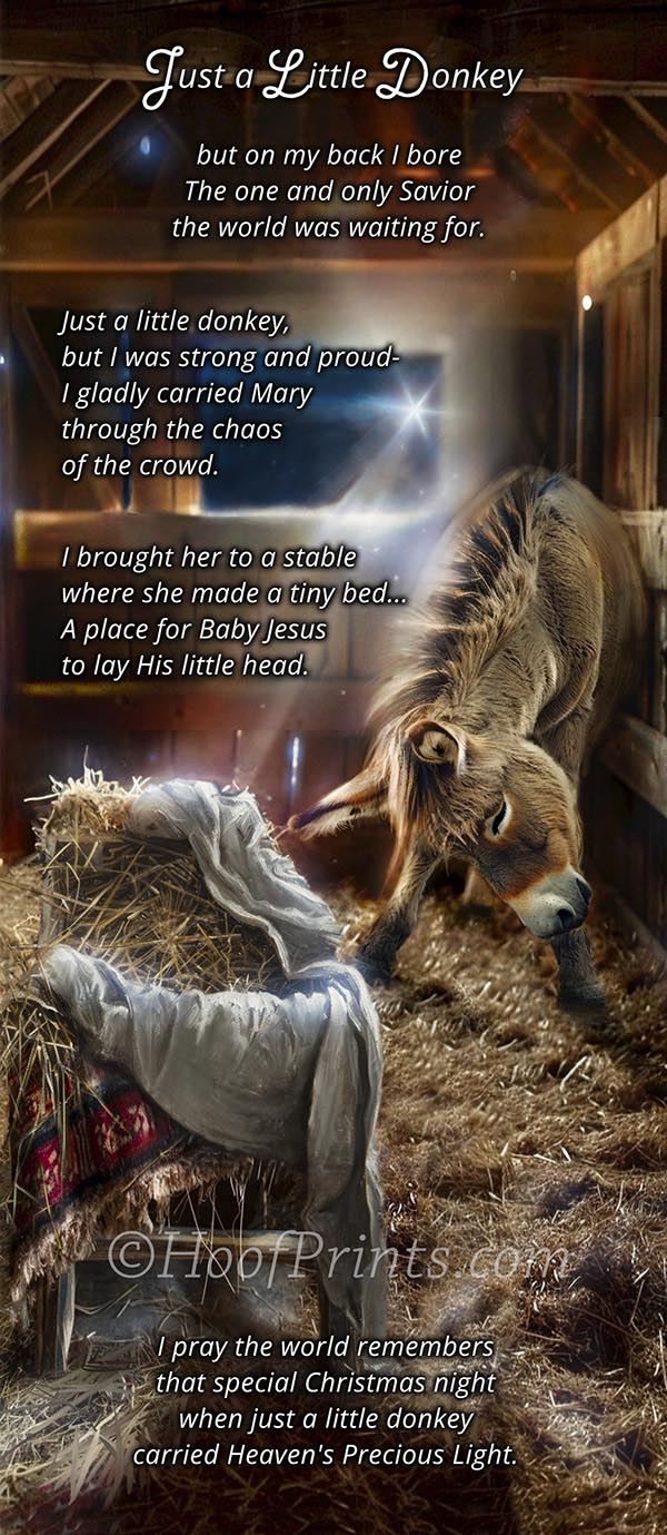 I pray the world remembers that special Christmas night when just a little donkey carried Heaven's Precious Light.