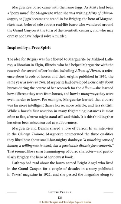 Perhaps what Henry would deem less important, but becomes more and more valid as time passes, is Teague's desire for the author's legacy to live on. Many of Marguerite Henry's books are still very much in print, but as time passes, fewer will remember once writing her fan letters, or perhaps think of the author at all. In these pages, Teague ensures that Marguerite Henry the writer will always be considered as every bit as remarkable as the books that she wrote. Featuring original artwork by Wesley Dennis from some of Henry's best-known books, as well as over 100 personal photographs, letters, and artifacts few have seen, this is a warm and wonderful biography for bibliophiles, horse lovers, aspiring writers, and Marguerite Henry fans, young and old.