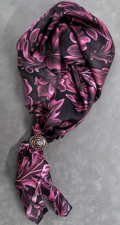 Plum Tooled Leather Wild Rag 100% Silk Scarf Cowboy Bandana