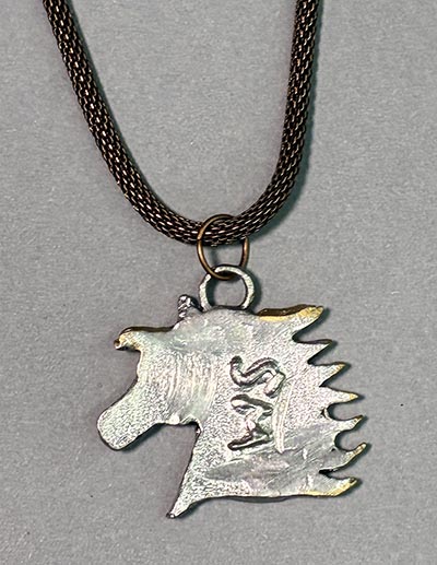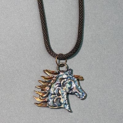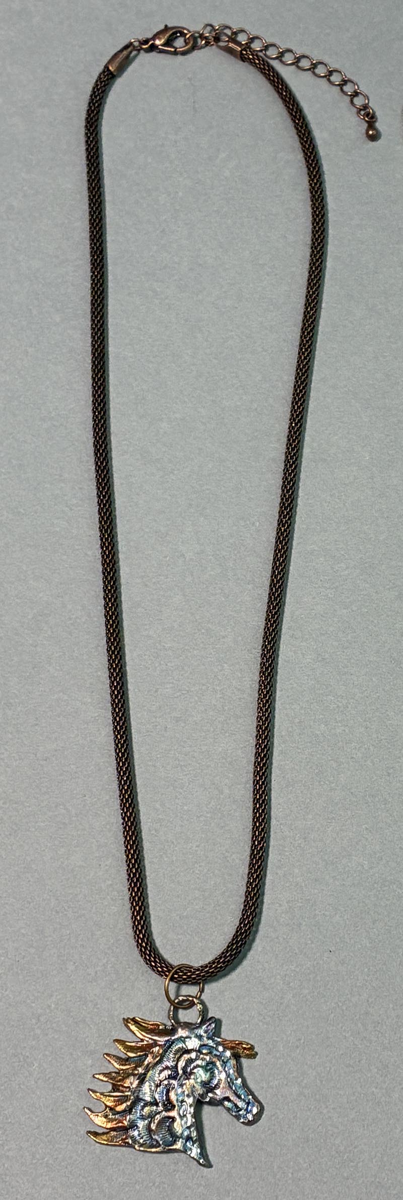 Vintage styled stamped horse head pendant 1 1/4" x 1 1/4" Pendant . Hand painted, with diamond cut accents over painting that give a striking, light catching effect.