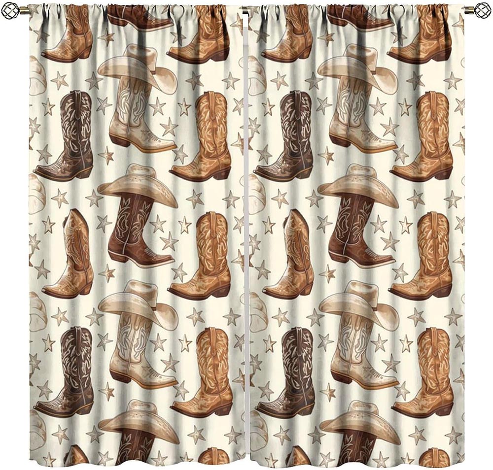 Retro Cowboy Boot Curtains pair of 20" x 45" Panels *ONLY ONE SET AVAILABLE*