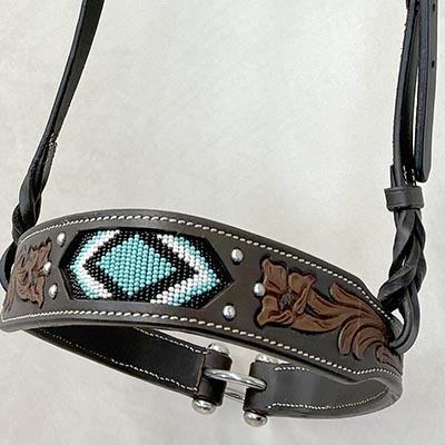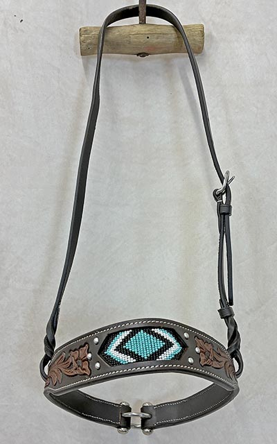 Turquoise Beaded Tooled Leather Noseband Tiedown *ONLY ONE AVAILABLE*