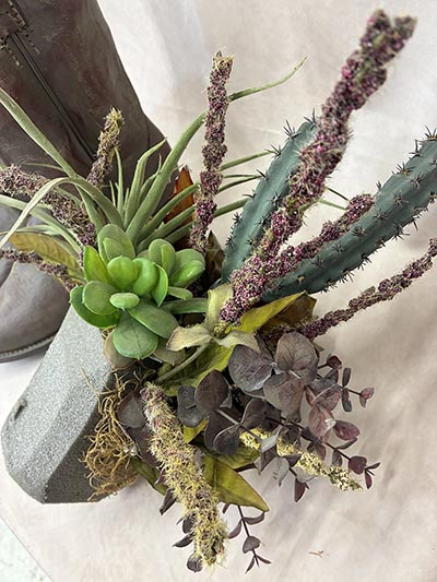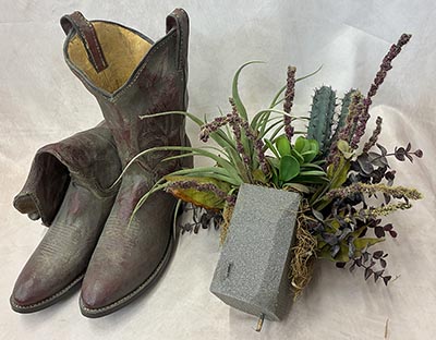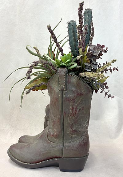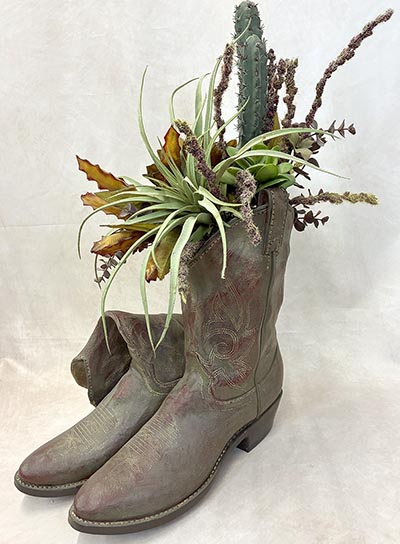 Vintage Cowboy Boots Planter with original greenery from photo shoot *ONE OF A KIND*