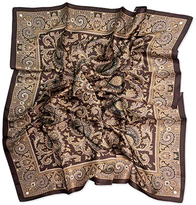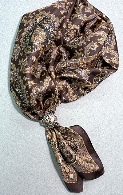 Mocha Brown Paisley Wild Rag 100% Silk Scarf Cowboy Bandana. A customer favorite for both cowboys and cowgirls, this silk wild rag adds bold color and classic western style whether you’re riding, working outdoors, or dressing up a denim jacket.
