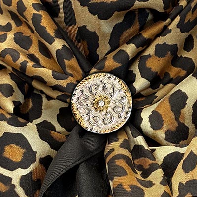 Small Two Tone Ornate Concho with Stone Scarf, Bandana, Wild Rag Slide